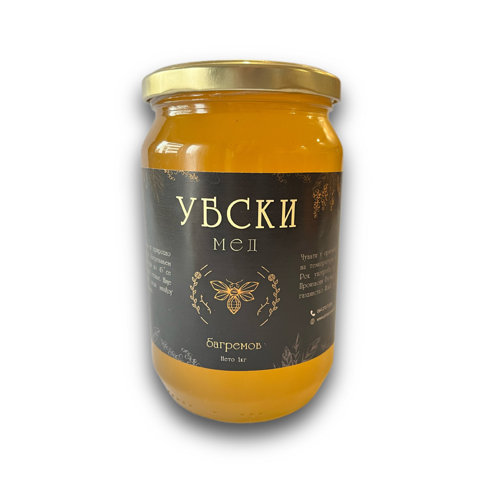 Bagremov med, kao jedinstveni dar prirode u Srbiji, proizvodi se od nektara bagrema, autohtone vrste karakteristične za naš region. Ovaj preukusni med potiče iz divljih bagremovih šuma, pretežno u centralnoj i istočnoj Srbiji, ali se može pronaći i u drugim delovima zemlje. Boja bagremovog meda varira od svetlo zelene do tamno žute, zavisno od prisustva polena različitog cveća. Poznat po svojim zdravstvenim blagodetima, bagremov med deluje protivupalno, ima prirodna antiseptička svojstva, jača imunitet i često se koristi u kozmetičke svrhe. Zahvaljujući svojim hemijskim karakteristikama, bagremov med sporo kristališe u odnosu na druge vrste, a proces kristalizacije može trajati od šest do osamnaest meseci. Kristalizacija je prirodna pojava koja ukazuje na autentičnost meda, a lagano zagrevanje tegle na temperaturi od 40°C tokom 12 sati (pored radijatora ili na suncu) ponovo će ga vratiti u tečno stanje. Uživajte u jedinstvenim benefitima bagremovog meda iz naše kolekcije!